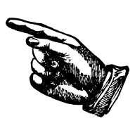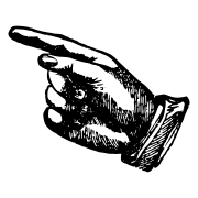 A symbol in the shape of a pointing hand drawing attention to points of interest.
